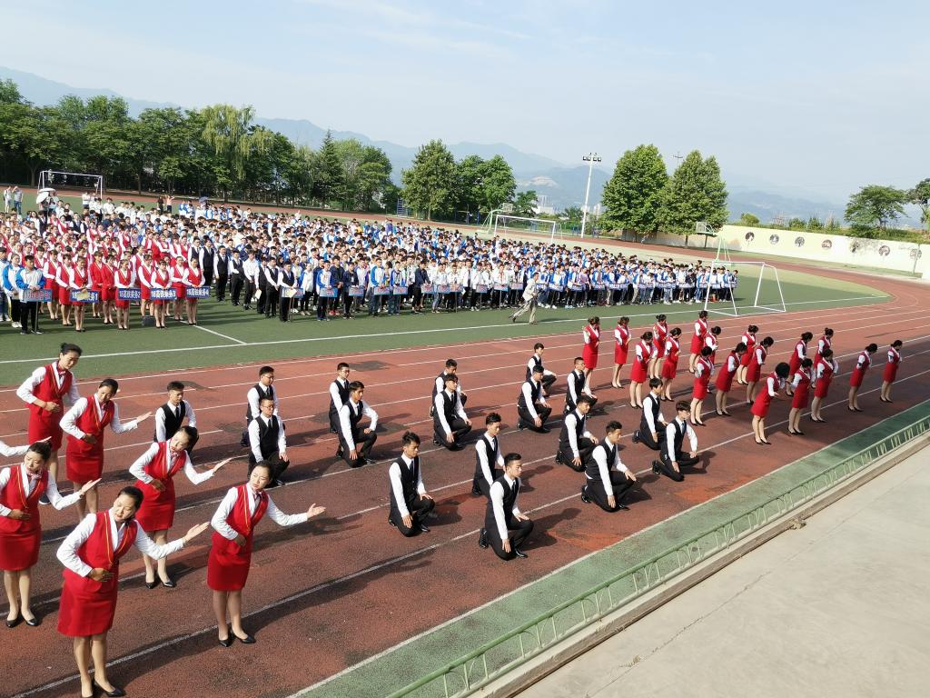 高铁乘务员工代表进行了礼仪操展示,同学们着装规范、姿态优雅,一动一静蕴涵着知性的气质和文明的素养。