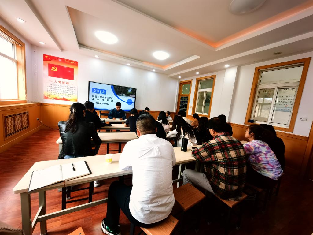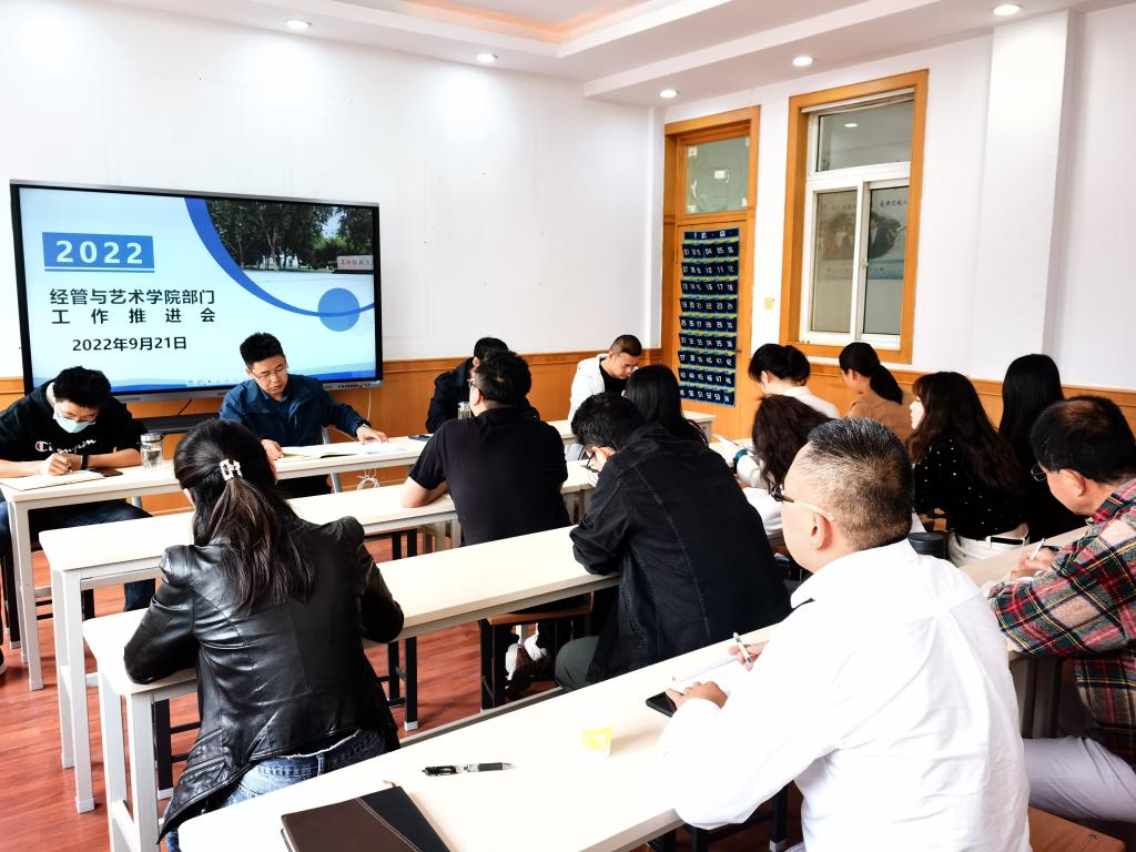 2022年9月21日,太阳成集团tyc539根据部门工作计划和安排,召开了部门工作推进会议,总结了上学期成果, 对新学期的工作进行了部署和安排。会议由经管与艺术公司党支部书记孟发军主持,太阳成集团tyc539经理杜海军及部门全体教师参加了会议。
