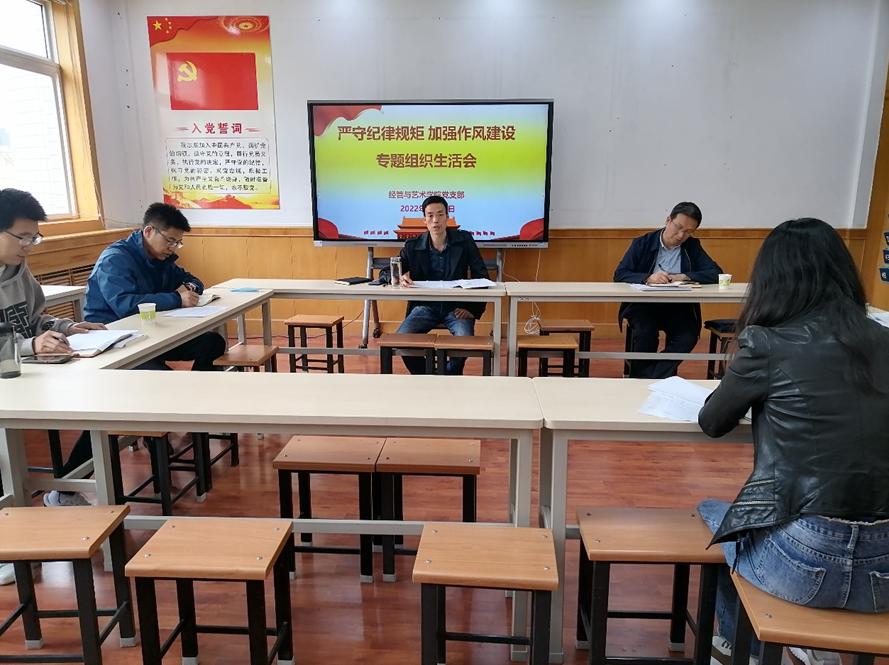 2022年9月20日下午经管与艺术公司党支部在二楼会议室召开“严守纪律规矩加强作风建设”专题组织生活会,支部全体党员参加,党委委员、纪委书记齐晓军到会指导并以普通党员身份参加了本次专题组织生活会,会议由党支部书记孟发军同志主持。