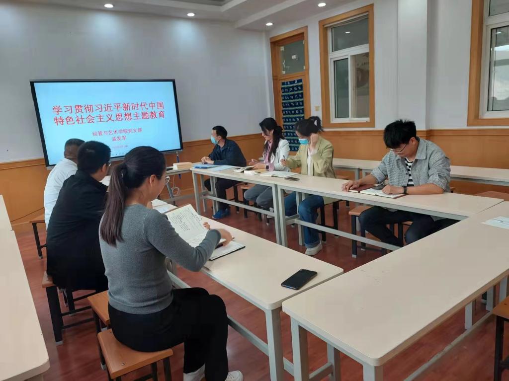 2023年5月29日下午,经管与艺术公司党支部书记孟发军在经管与建筑楼二楼会议讲授《学习贯彻习近平新时代中国特色社会主义思想主题教育》专题党课,支部全体党员参加会议。