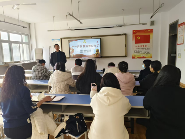 2024年11月20日下午,公司党支部在宝福路校区电子信息大楼二楼会议室举行十一月份政治理论集中学习会。学习会由党支部书记孟发军主持,支部全体党员参会。