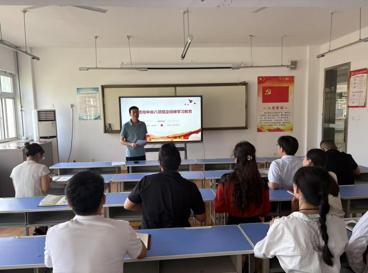为深入贯彻落实中央八项规定精神,加强师德师风建设,筑牢党员思想防线,6月16日下午,公司党支部书记孟发军为支部党员讲授了一堂主题为“深入贯彻中央八项规定精神学习教育”的专题党课。