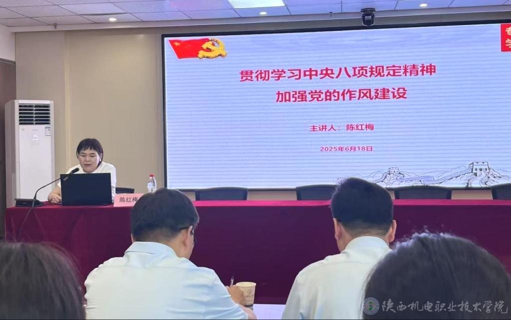 陈红梅围绕“中央八项规定解决什么问题”“领会中央八项规定及其实施细则内容”“熟知违反中央八项规定精神的具体表现”“强化作风建设永远在路上”等四方面,系统解读了中央八项规定的时代背景、核心内容及实践要求。通报了违反中央八项规定精神的典型案例,特别列举了教育领域违规设立“小金库”、科研经费滥用、兼职取酬不报备、辅导员向员工借款赌博、违规报销科研经费等高校常见违纪问题,教育引导党员干部要以案为戒,警钟长鸣,时刻绷紧纪律这根弦。