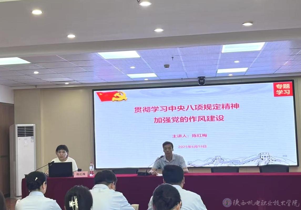 最后,陈红梅向全体党员干部发出倡议,要进一步加强对中央八项规定精神的学习,让遵守中央八项规定精神成为习惯,切实将学习教育融入教书育人实践中,以学促干、以干践行,在厉行节约、反对浪费、务实作风等方面率先垂范,共同推动党的作风持续向好。