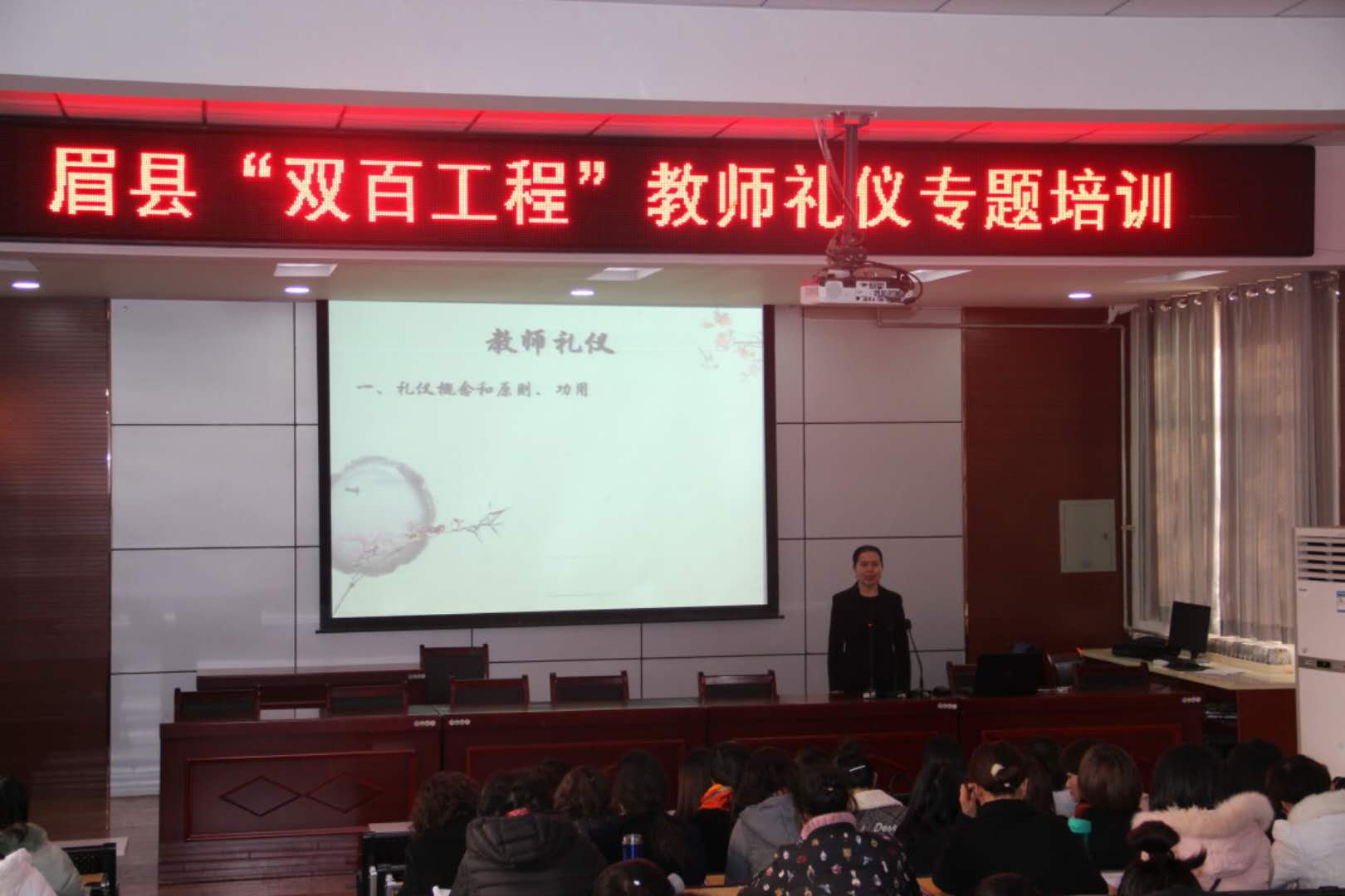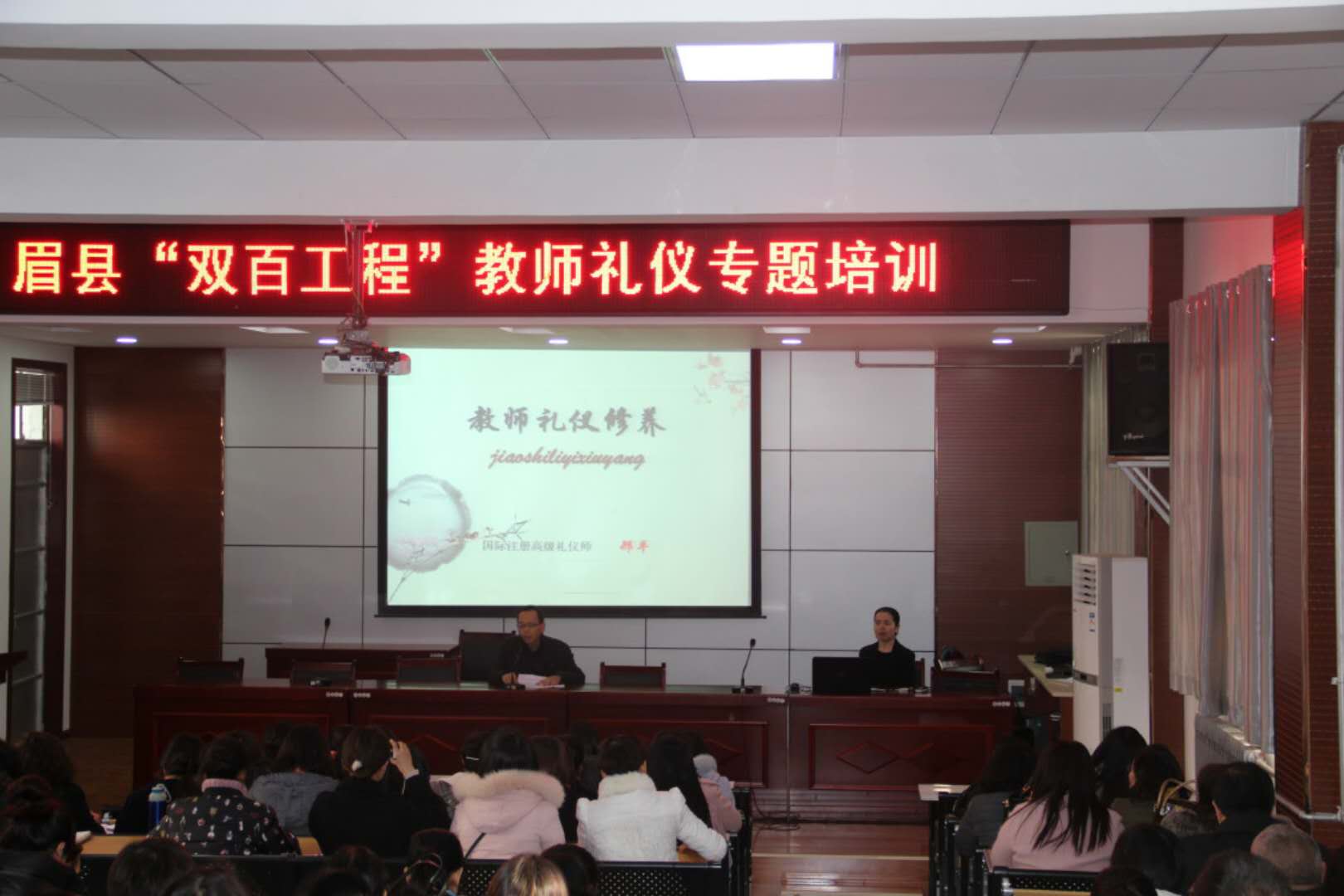 在公司党委书记伊逊智、副书记邓新治的带领下,2017年11月30日,经济管理与艺术系支部书记、国际注册礼仪师邢平,参加省扶贫工作,为眉县“双百工程”作了教师礼仪专题培训。