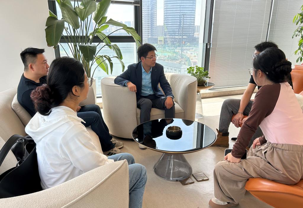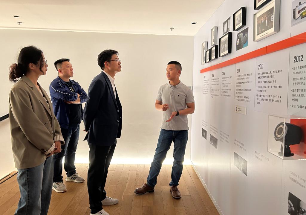 5月8日,走访了上海曼恒数字技术股份有限公司,受到侯总热情接待,侯总向考察组详细介绍了公司业务范围及人才需求情况,邀请考察组体验企业自主研发的VR产品。