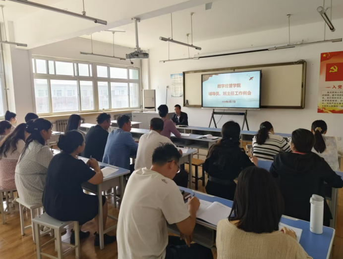 同时,孟发军书记还部署了第二届老员工职业规划大赛事宜,专职辅导员何睦老师就2024-2025学年度家庭经济困难员工认定工作做了详细解读。