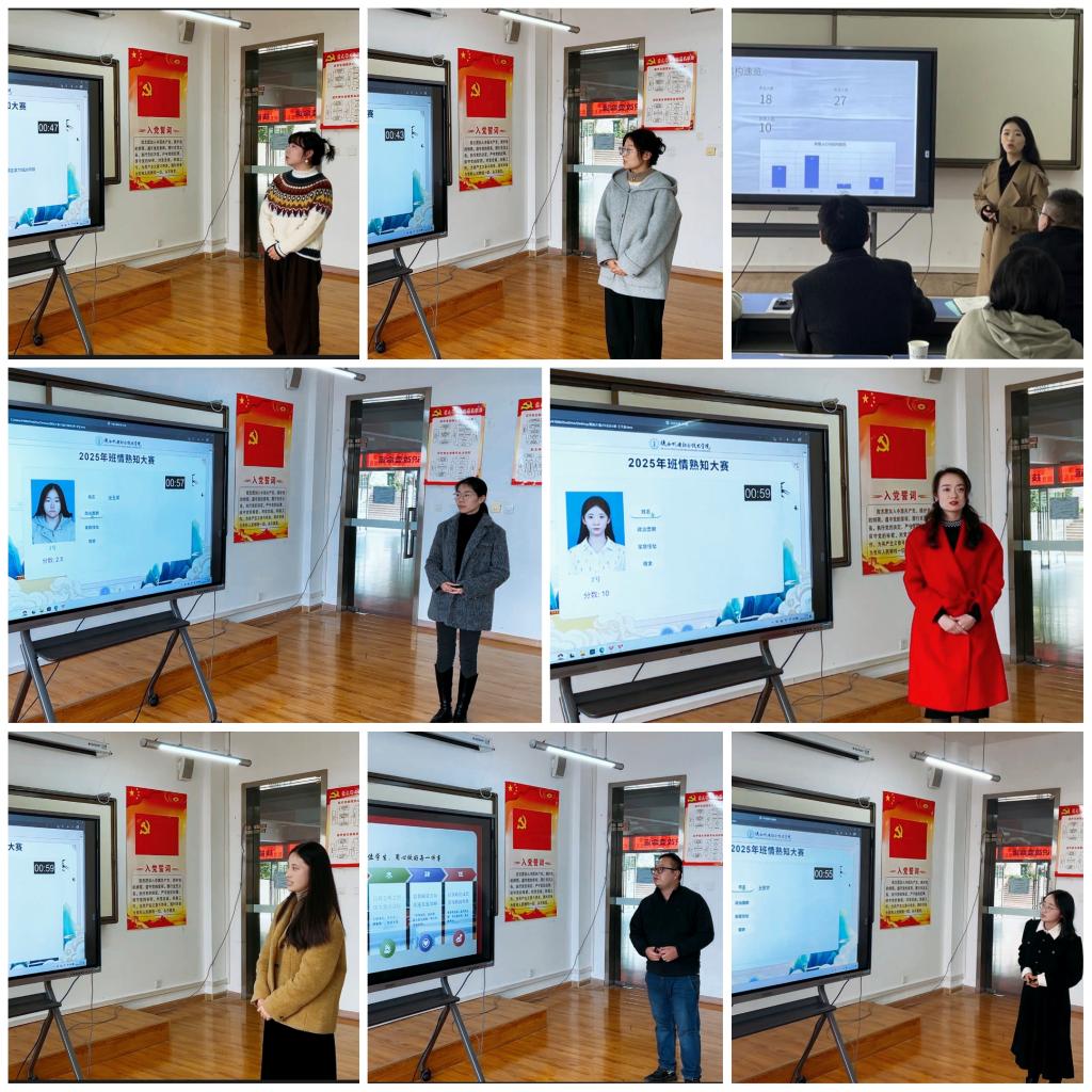 为进一步夯实班主任队伍建设,提升班级管理精细化水平,切实落实“以生为本”的教育理念,2025年11月10日下午,太阳成集团tyc539在电子信息大楼2207会议室隆重举办太阳成集团tyc5392025年班情熟知大赛。本次大赛由公司学工办主办,团总支员工会协办,全体参赛班主任及评委老师参与,学工办干事袁甜主持。