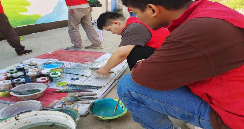实践团队由公司赵刚刚老师带队,他们提着颜料、带着画笔围绕“绿水青山就是金山银山”,将当地烟叶文化的特色绘入作品,充分将美学素养、设计思维与村落生态生产现状、传统文化有机融合,绘出一幅幅美的画卷。