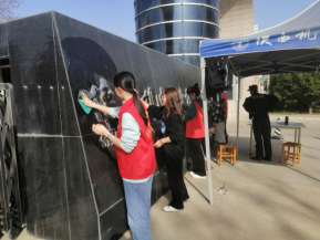 活动分三组进行。分别对宝福路校区大门口、羽乒馆、各处宣传栏进行了打扫净化。志愿者们在辅导员何睦、杨涛、胡馨月老师的带领下,发扬了不怕苦、不怕累、不怕脏的志愿服务精神。同学们有的拿着扫帚认真细致的清扫地面,对各种卫生死角的垃圾、杂物进行了彻底清理;有的拿着抹布对集团大门口标语、校内各处宣传栏、室外楼梯扶手、羽乒馆各种体育设施等进行了擦拭;有的在水房里为其他同学交替换洗清扫工具等。志愿服务活动场面热火朝天、干劲十足,同学们齐心合力、互帮互助,切实做到了打扫一处、清洁一处、靓丽一处。通过一个多小时的努力,校园内外变得干净整洁。
