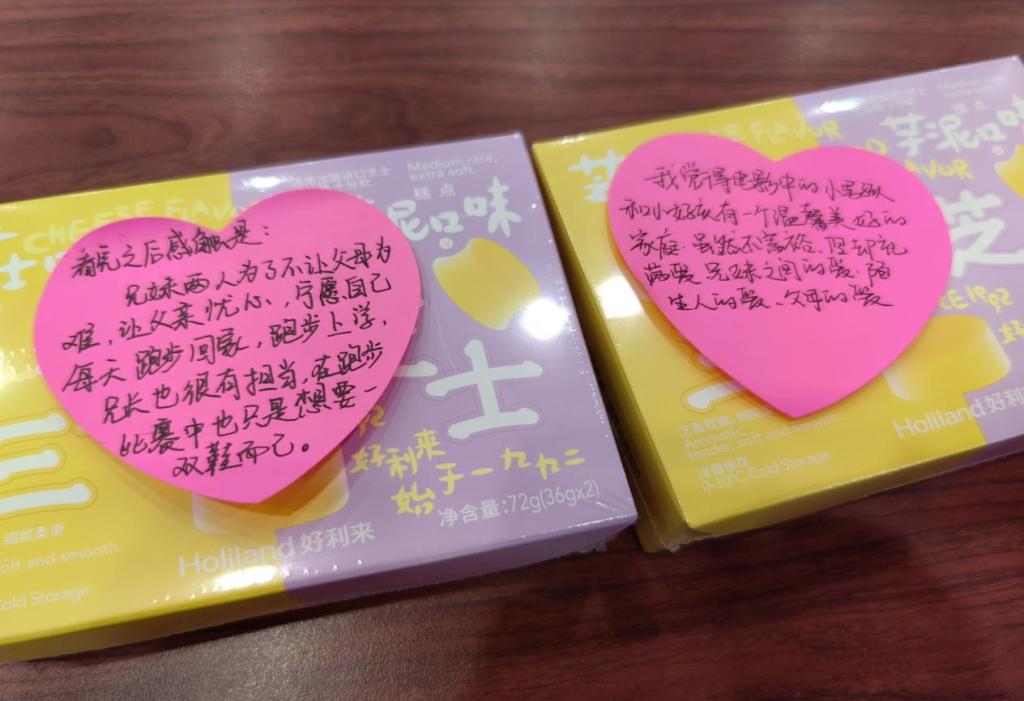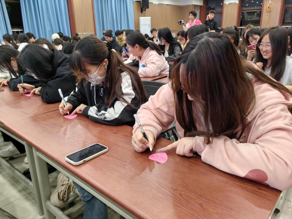 放映结束后,大家围绕着影片中的家庭关系、成长困境和幸福感等话题展开深入交流,分享彼此的心得体会和情感感悟,并将影片对心灵的触碰化为文字,写在爱心便利贴上。