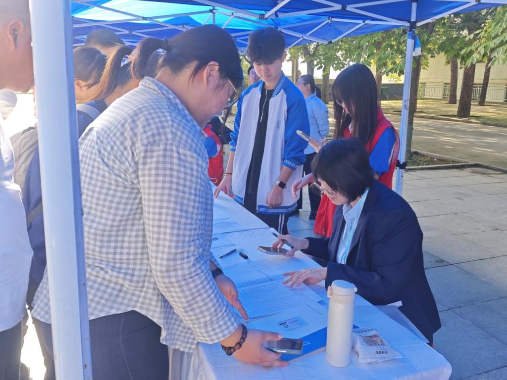 汽车机电大楼报到处,各班主任提前到位,是迎新“核心力量”。每个班级服务台前,整齐摆放新生信息登记表,班主任佩戴工作牌迎新生。面对新生的专业学习咨询,他们耐心讲解;办理手续时高效流畅,报到队伍井然有序,无长时间排队情况,让新生和家长倍感安心。